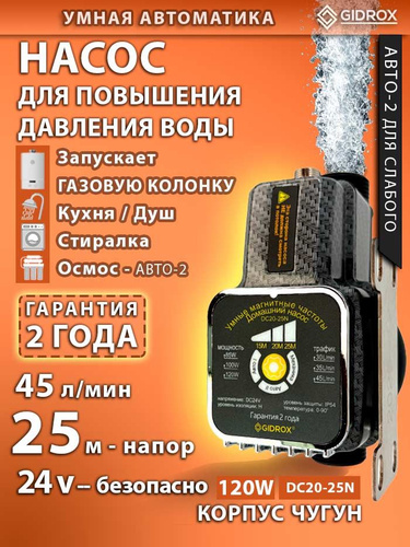 Насос для повышения давления воды GIDROX DCG20-25N, 120 Вт, 24в., напор 25м, автоматический, бесшумный 35 дБ