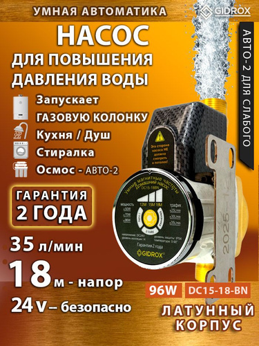 Насос для повышения давления воды GIDROX DC15-18-N, 96 Вт, 24в., напор 18 м, автоматический, бесшумный 35 дБ