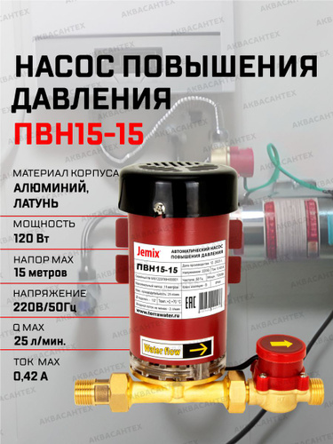 Насос повышающий давление с сухим ротором Jemix-15 (0,120 кВт,25 л/мин напор 15м)/ Автоматически насос повышения давления