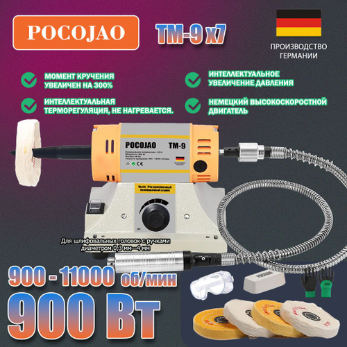 полировальная машинка.POCOJAO-TM-9X3(900W) Полировальный станок для ювелирных/ изделий буфер для стоматологических работ .и токарный станок в комплекте