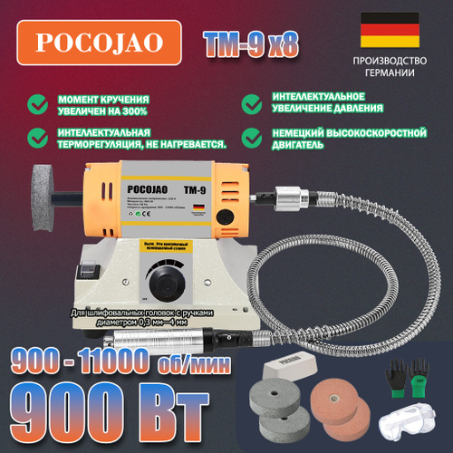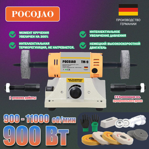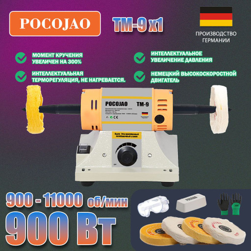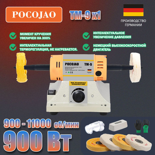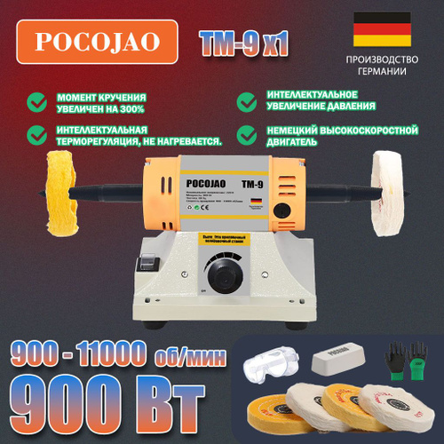 POCOJAO-TM-9(900W) Полировальный станок для ювелирных изделий буфер для стоматологических работ и токарный станок в комплекте 6 войлочных кругов, 2 абразивных фибровых круга, защитное 009