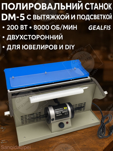 GEALFIS полировальный станок DM-5 с вытяжкой и подсветкой 200Вт для ювелирных изделий и монет