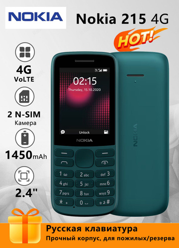 Nokia Мобильный телефон Nokia Мобильный телефон Nokia 215 4G (2020), Dual SIM, компактный и прочный кнопочный телефон c хорошей батареей, бирюзовый