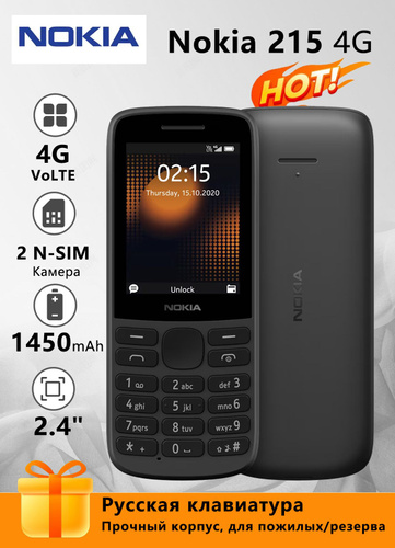 Nokia Мобильный телефон Nokia Мобильный телефон Nokia 215 4G (2020), Dual SIM, компактный и прочный кнопочный телефон c хорошей батареей, черно-серый, черный