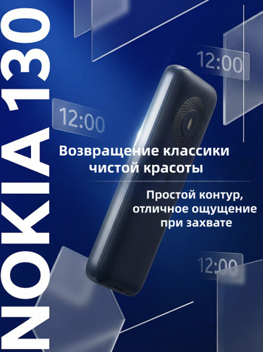 Nokia Мобильный телефон NOKIA 130 2023 SD, 2G-телефон, двойные SIM-карты, ёмкий аккумулятор 1450 мАч, лёгкий корпус, слот для MicroSD, темно-синий, лазурный