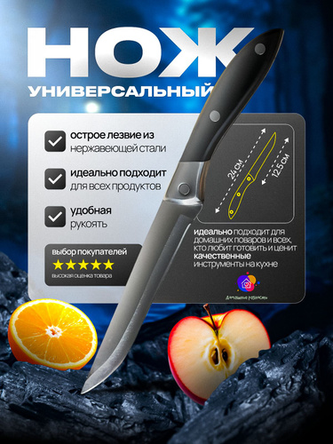Нож кухонный для нарезки, универсальный, нержавеющая сталь
