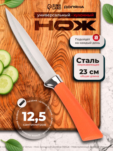 Нож кухонный универсальный из нержавеющей стали "Рич", цвет оранжевый, длина лезвия 12,5 см