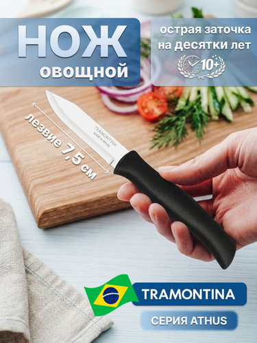 Овощной нож Tramontina Athus для мяса, овощей и картофеля, острое лезвие 7,5 см, Трамонтина