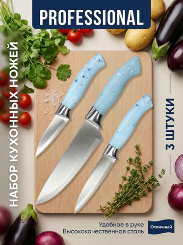 Премиальный набор ножей 3 в 1: поварский/универсальный/фруктовый, эргономичная рукоять