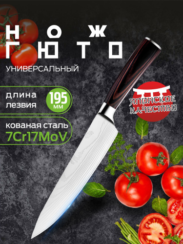 Японский кухонный нож, Гюто, большой кованая сталь 7Cr17MoV, рукоять дерево