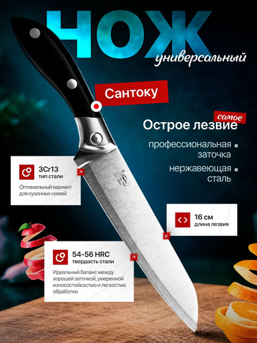 ASAKHgroup Кухонный нож универсальный, поварской, длина лезвия 17 см