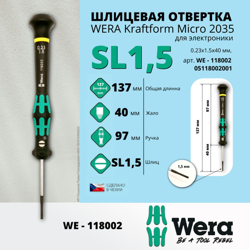 Отвертка шлицевая WERA Kraftform Micro 2035 для электроники, 0.23x1.5x40 мм (WE-118002)