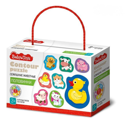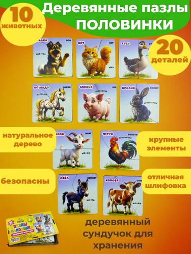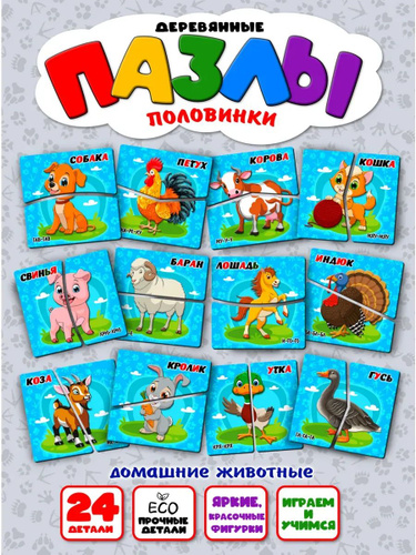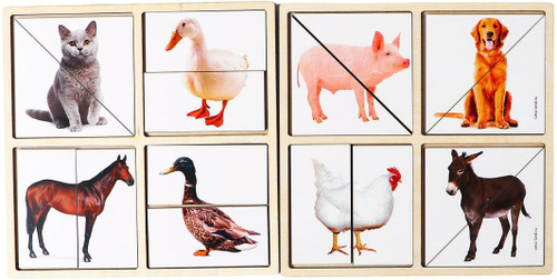 Деревянные пазлы половинки "Домашние животные" для малышей