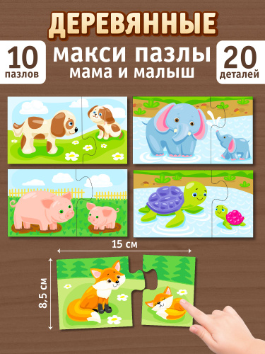 Развивающие деревянные макси пазлы "Мама и малыш" Десятое королевство