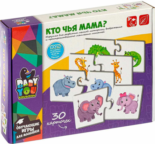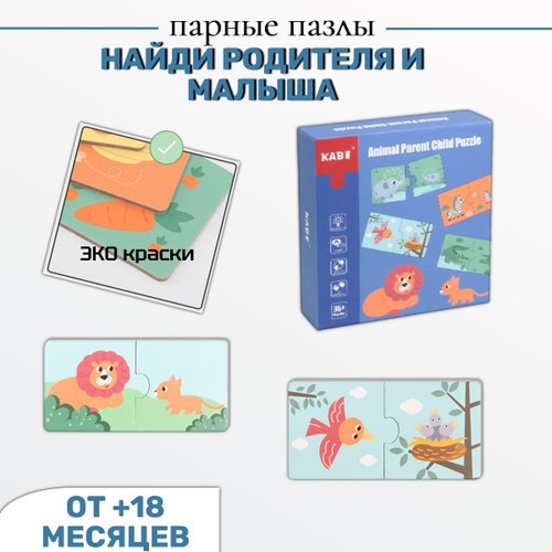Пазл для малышей с крупными деталями "Кто чья мама?", обучающая игра, парные пазлы, картинки-половинки, 30 элементов