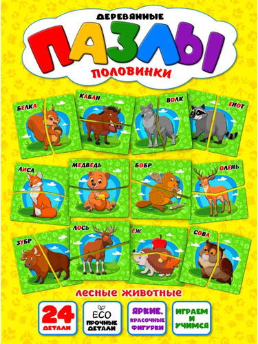 Пазл деревянный "Веселые половинки" (парные пазлы)