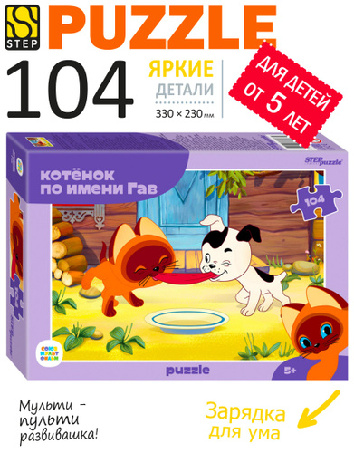 Пазлы для детей. Котенок по имени Гав, 104 детали для ребенка от 5 лет. Step Puzzle. Игрушка для девочки. Игрушка для мальчика. Подарок.