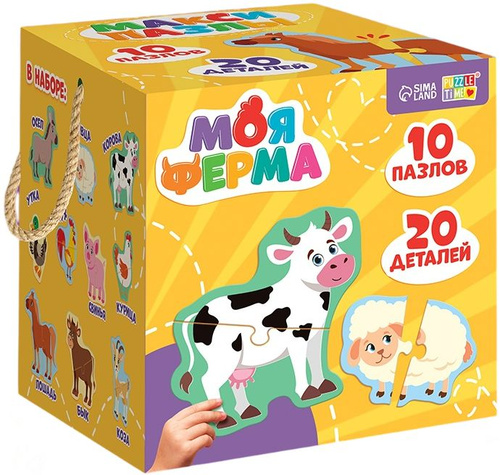 Макси-пазлы фигурные "Моя ферма", 20 крупных элементов, 10 пазлов, развивающая логическая игра-головоломка для детей, картинки-половинки, учим животных