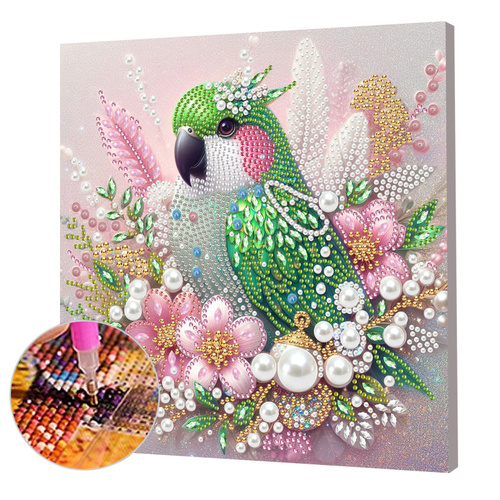 DIY-картина из страз Попугай в рамке, 25 25 см, круглые/фигурные/жемчужные кристаллы