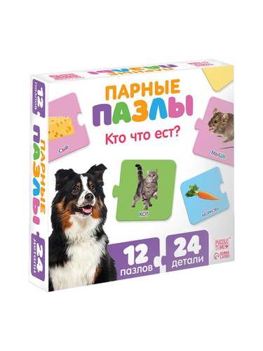 Парные пазлы "Кто что ест?" для малышей, развивающая логическая игра-головоломка на ассоциации для детей, 12 пазлов, 24 элемента
