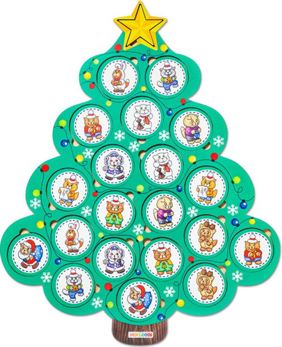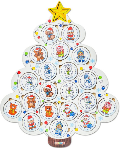Новогоднее мемо Smile Decor "Веселые картинки", настольная мемори-игра для детей на развитие памяти, деревянная рамка-вкладыш, найди пару