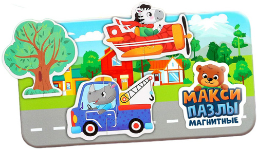 Магнитные макси-пазлы "В городе", развивающая игра-головоломка, картинки-половинки для малышей, 12 парных пазлов и 2 магнитных поля, в металлической коробке