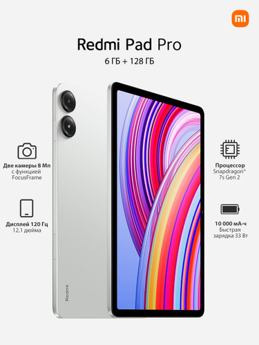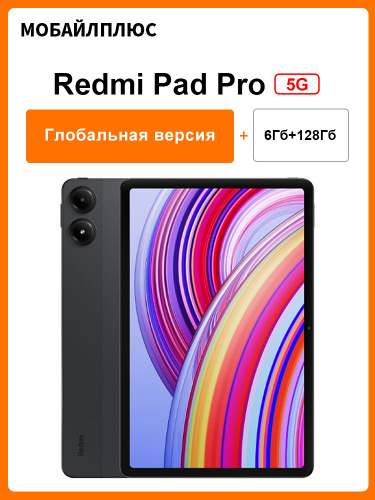 Xiaomi Планшет Xiaomi Redmi Pad Pro 5G Глобальная версия Процессор Snapdragon 7s Gen 2 Аккумулятор емкостью 10000 мАч Камера 8 Мп быстрая зарядка мощностью 33 Вт, 12.1" 6 ГБ/128 ГБ, серый