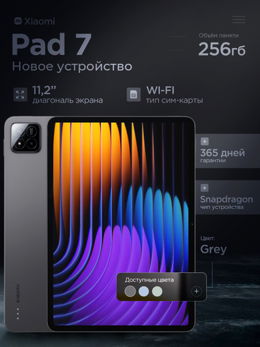 Xiaomi Планшет 11.2" Планшет Xiaomi Pad 7 12/256 ГБ, Wi-Fi Graphite grey, 11.2" 256 ГБ, серый, темно-серый