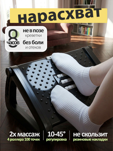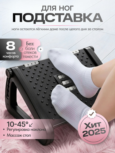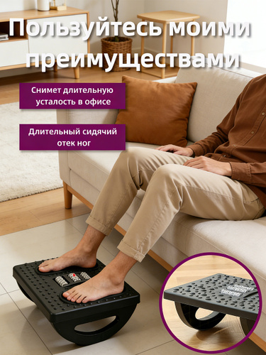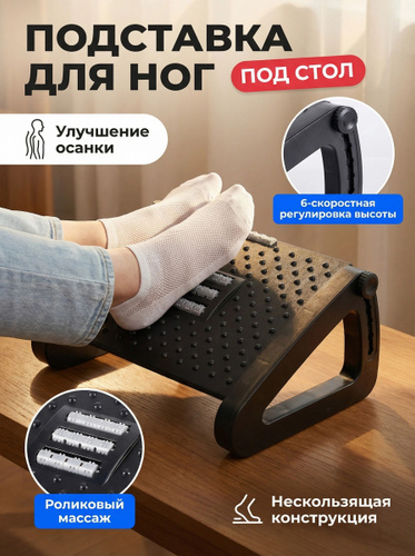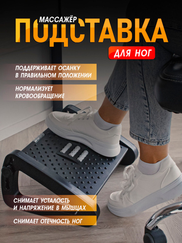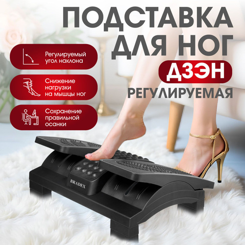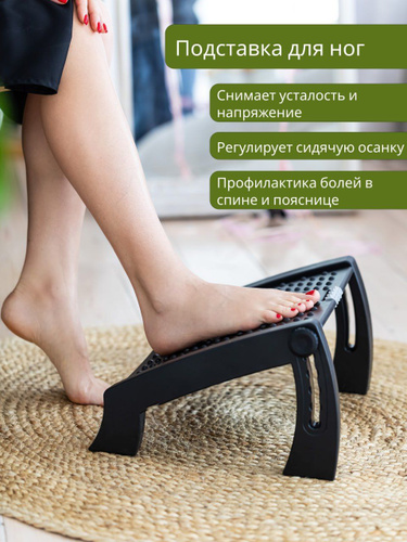 Подставка для ног под стол офисная для осанки 41,5х30 см, с фиксаторами, черная, Brauberg