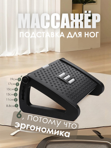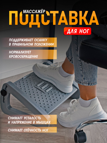 Подставка для ног под стол офисная для осанки 43x32 см, с массажной поверхностью, регулировка угла наклона, 2 платформы, Brabix Ultra 4