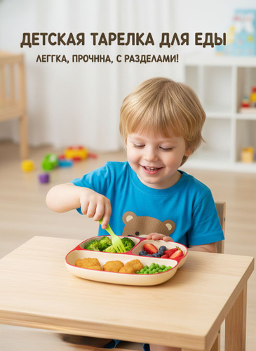ZHONE Детская тарелка для еды - небьющаяся детская посуда с разделителями для ребенка