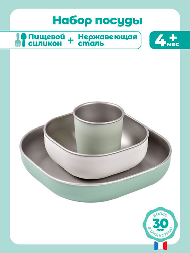 Набор детской посуды из нержавеющей стали BEABA: 2 тарелки, стакан, посуда для кормления