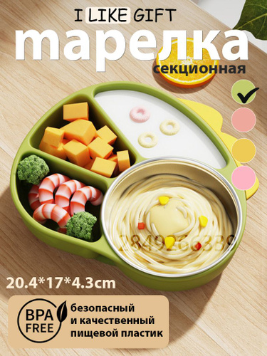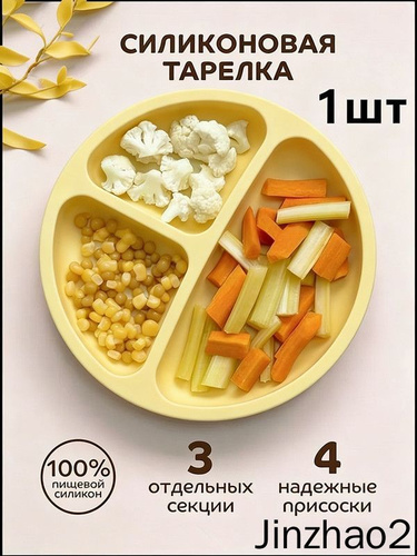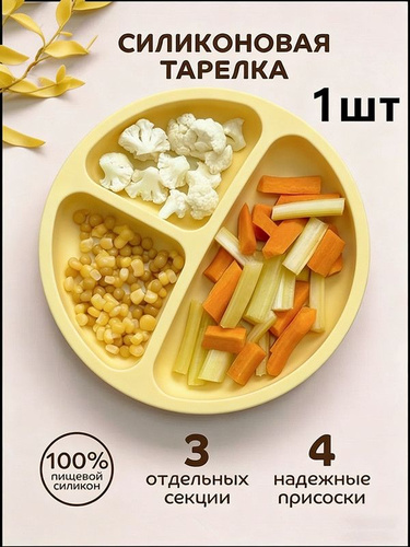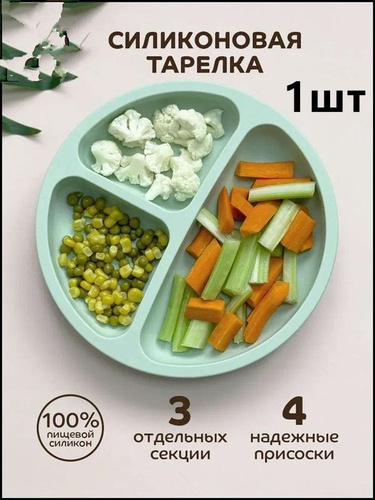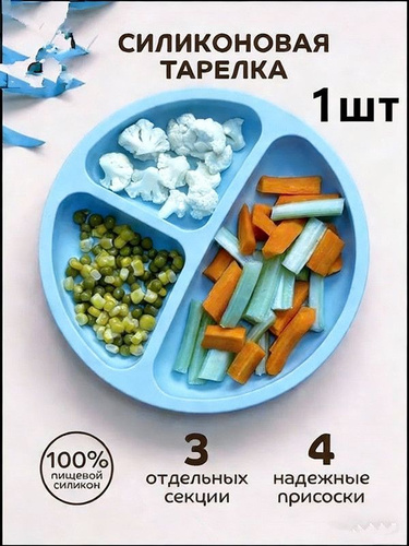 Детская тарелка с присоской силиконовая небьющаяся разделителями