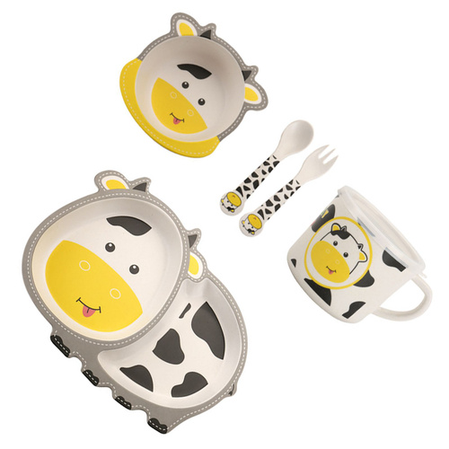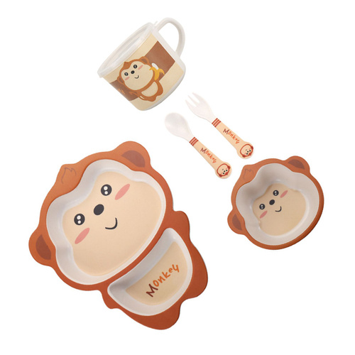 5 шт Безопасные разделенные тарелки из бамбукового волокна с мультяшным дизайном для детей