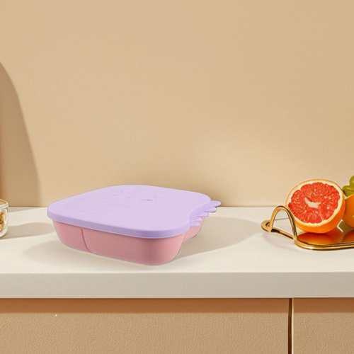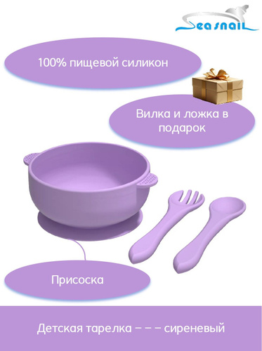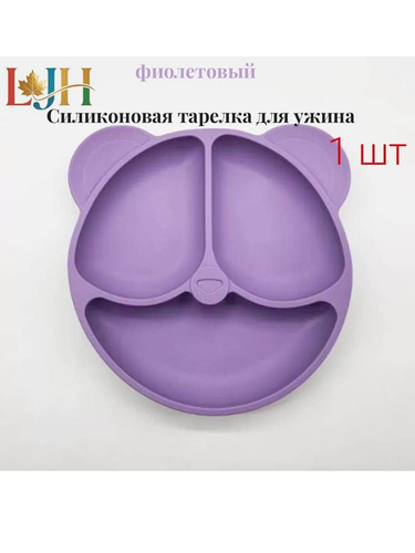 Силиконовая тарелка для детского питания, включает крышку, компактная упаковка, фиолетовый цвет