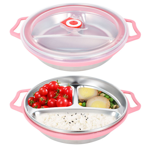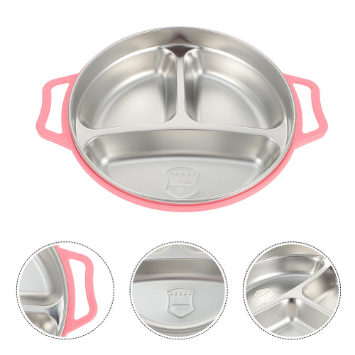 Тарелка Для Подачи Еды, Из Нержавеющей Стали, С Отделениями, Розовый, 1 Упаковка