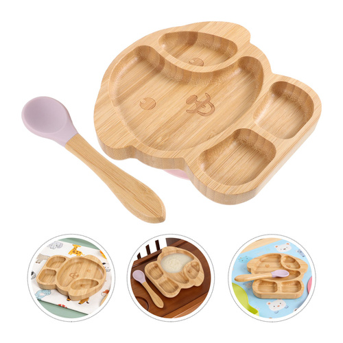Набор для питания ребёнка из разделённой тарелки с присоской и деревянной ложки для малышей