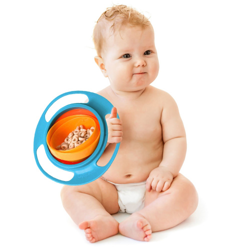 Детская тарелка-вращающийся блюдец с защитой от проливания, синяя