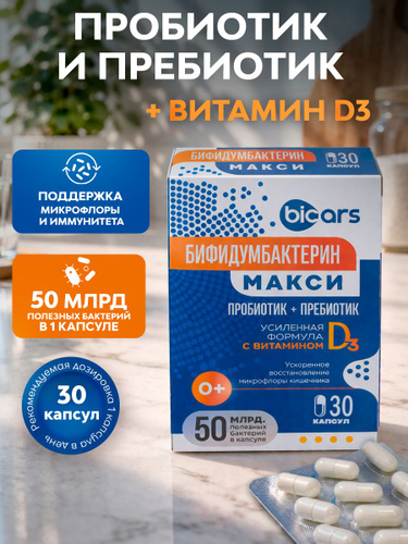 Бифидумбактерин МАКСИ капсулы №30 пробиотик+пребиотик с витамином D3 для взрослых и детей 0+
