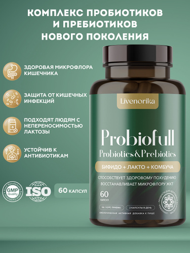 Пробиотики и пребиотики для взрослых, бад для жкт и восстановления микрофлоры / 60 капсул / Livenorika