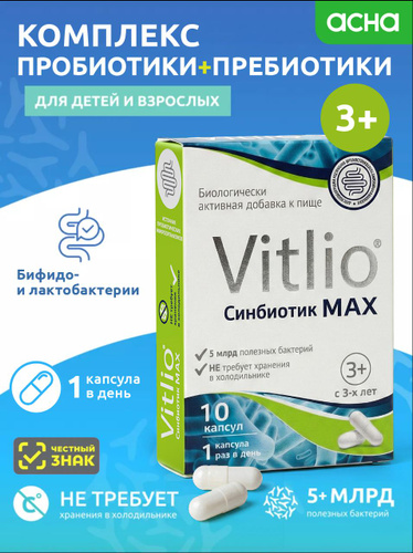 Синбиотик, пробиотики и пребиотики для восстановления работы кишечника, для взрослых и детей Макс Vitlio 10 капсул АПТЕКА АСНА