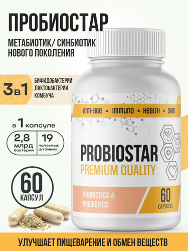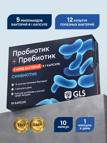 Пробиотик + Пребиотик, комплекс для роста и размножения полезной микрофлоры кишечника, 10 капсул