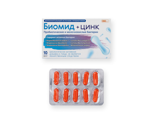 Пробиотические и молочнокислые бактерии Биомид + Цинк 400 мг пробиотик