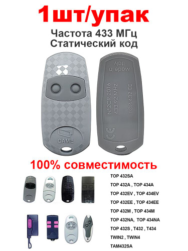 Пульт CAME 001TOP-432EE, 2х канальный, 433.92 МГц.Для CAME 433 МГц гаражных ворот и автоматических дверей
