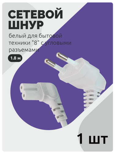 Шнур сетевой белый для бытовой техники "8" с угловыми разъемами 1.8м, 1шт.