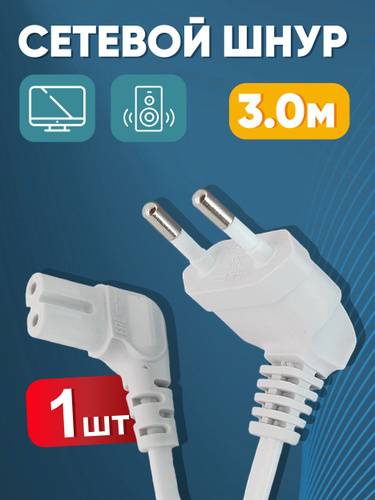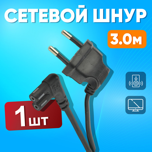 Кабель питания сетевой восьмерка - 3 м. угловые разъемы 2х0.75мм