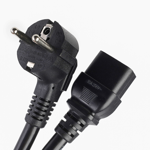 Кабель питания для компьютеров 50 см сечение 3 x 0,75 мм евровилка угловая Schuko разъем C13 кабель GCR 220V черный сетевой шнур для монитора, для мультиварки