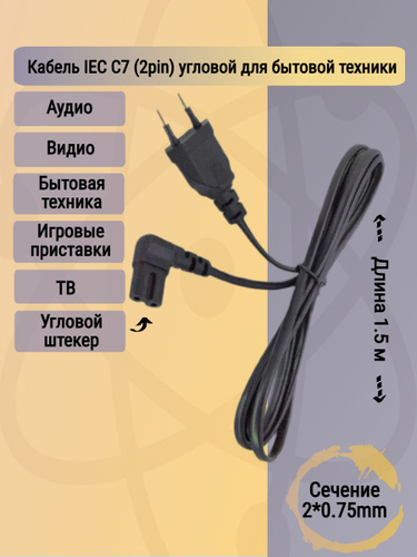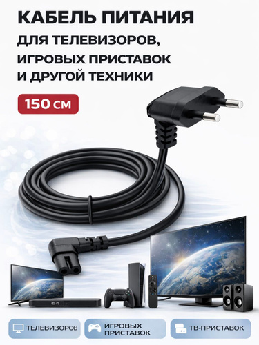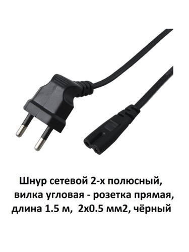 Кабель питания C7 1.5 м угловой, сетевой шнур 2 pin Универсальный для телевизора, приставки, аудиотехники