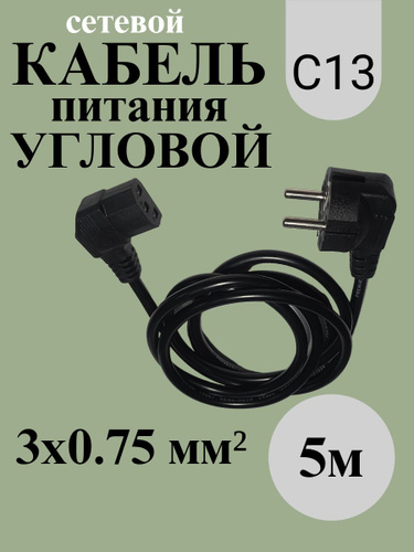 Угловой кабель питания сетевой 3 pin для компьютера 1м (евровилка шнур питания для процессора) IEC-C13
