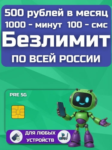 БЕЗЛИМИТНЫЙ ИНТЕРНЕТ РФ 500 руб мес Сим карта для мобильных, модемов и роутеров LKTFM_500RT25